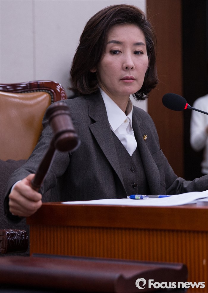 (서울=포커스뉴스) 나경원 외통위원장이 26일 오후 서울 여의도 국회 외교통일위원회 전체회의에서 박근혜정부의 국정 핵심 법안 중 하나인 북한인권법을 의결하며 의사봉을 두드리고 있다.