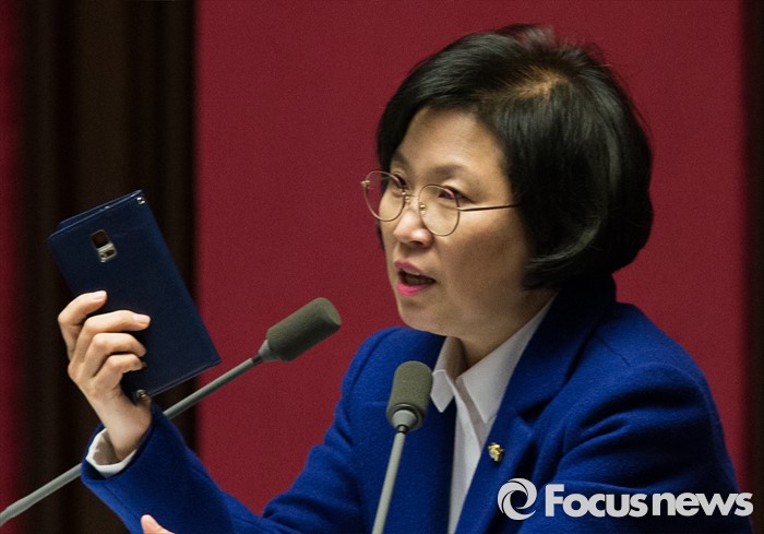 | △ 핸드폰 들고 발언하는 김현 의원 |