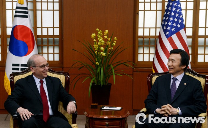 (서울=포커스뉴스) 26일 오후 서울 종로구 외교부 청사에서 윤병세 외교부 장관과 대니얼 러셀 미국 국무부 동아시아태평양담당 차관보가 대화하고 있다.