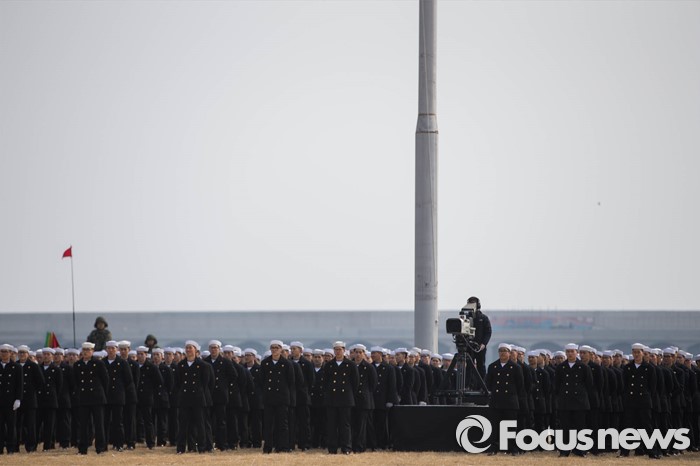 (서귀포=포커스뉴스) 26일 오후 제주 서귀포 제주해군기지에서 '제주민군복합형관광미항' 준공식이 열린 가운데 해군 병사들이 행사 시작을 기다리고 있다.