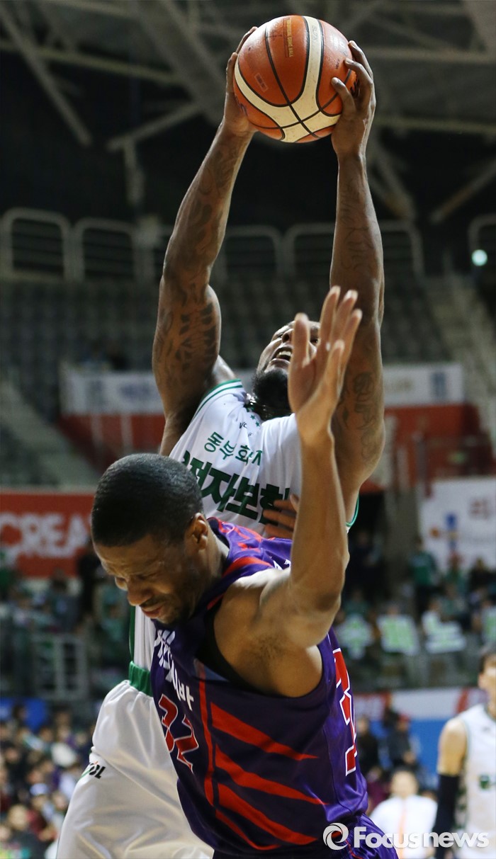 (고양=포커스뉴스) 26일 고양체육관에서 열린 2015-2016 프로농구 오리온-동부 6강 플레이오프 1차전에서 동부 김주성의 드리블때 오리온 이승현이 볼을 가로채려 달려들고 있다.