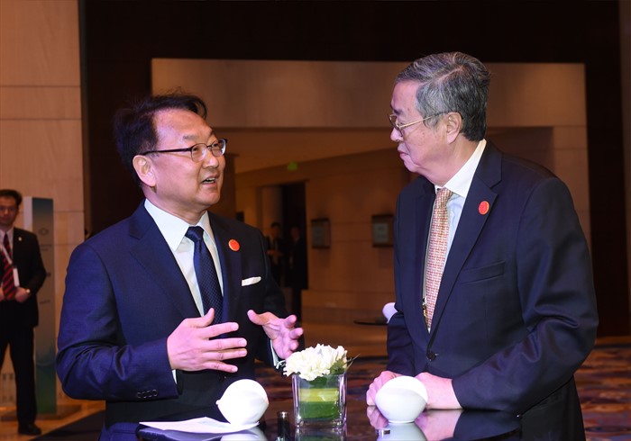 | △ 저우샤오촨 중국 인민은행장과 면담 갖는 유일호 부총리 |