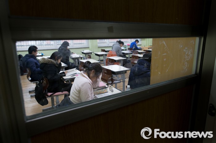 (서울=포커스뉴스) 27일 오전 서울 서초고등학교에서 제58회 사법시험 제1차시험에 응시한 수험생들이 시험전 마지막 복습을 하고 있다. 최근 법무부가 사법시험 폐지를 4년 유예하겠다는 입장을 밝혔으나, 내년 변호사시험법 개정작업이 사실상 중단된 상태여서 사시 존폐 여부가 불투명한 상황이다.