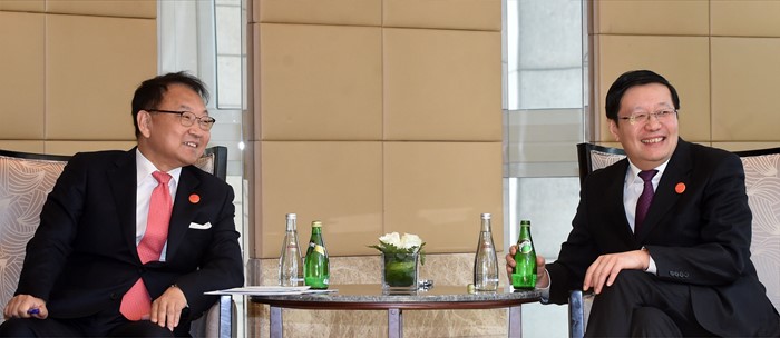 (서울=포커스뉴스) G20재무장관.중앙은행총재회의 참석차 중국 상해를 방문중인 유일호 부총리 겸 기획재정부 장관이 2월 27일 푸동 상글리라 호텔에서 러우 지웨이 중국 재무장관과 면담을 갖고 있다. <사진제공=기획재정부>