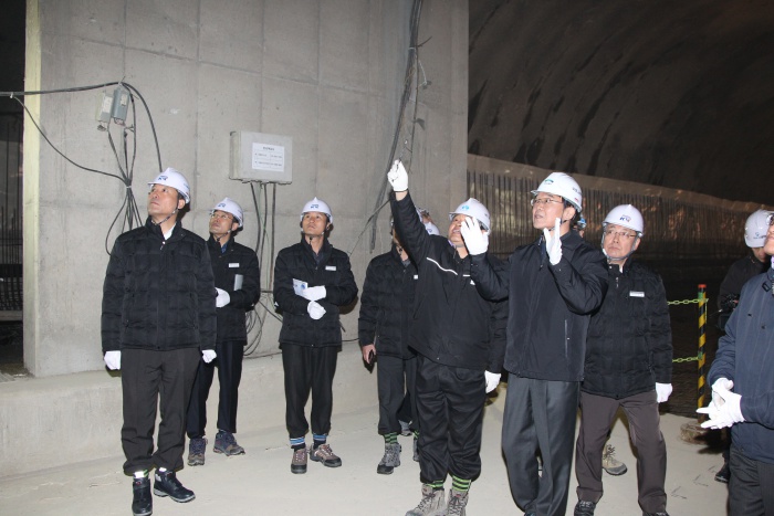 (서울=포커스뉴스) 강호인 국토교통부 장관이 27일 오후 소사∼원시 복선전철 4공구 건설현장을 찾아 안전점검을 하고 있다. <사진제공=국토교통부>