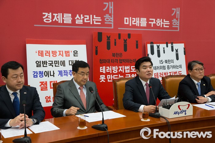 (서울=포커스뉴스) 28일 오후 서울 여의도 국회에서 열린 국회정상화 촉구 특별기자회견에서 원유철(오른쪽 두번째) 새누리당 원내대표가 발언을 하고 있다.