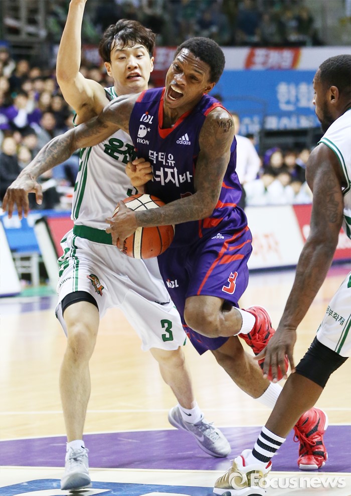 (고양=포커스뉴스) 28일 고양체육관에서 열린 2015-2016 프로농구 오리온-동부 6강 플레이오프 2차전에서 오리온 조 잭슨이 동부 허웅의 마크를 뚫고 골밑을 향해 돌파하고 있다.