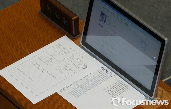 | △ 원유철 원내대표 자리 놓인 발언신청서 |