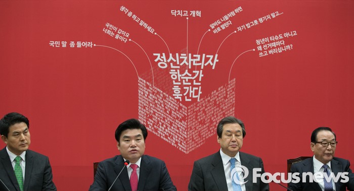 (서울=포커스뉴스) 원유철(왼쪽 두번째) 새누리당 원내대표가 29일 오전 서울 여의도 국회에서 열린 최고위원회의에 참석해 모두발언하고 있다.