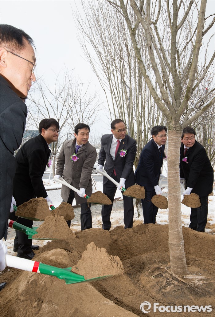 (세종=포커스뉴스) 홍윤식(오른쪽 세 번째) 행정자치부 장관이 29일 오전 세종시 어진동 대통령기록관 전시관 입구에 마련된 무궁화정원 개장식에서 시삽을 하고 있다.