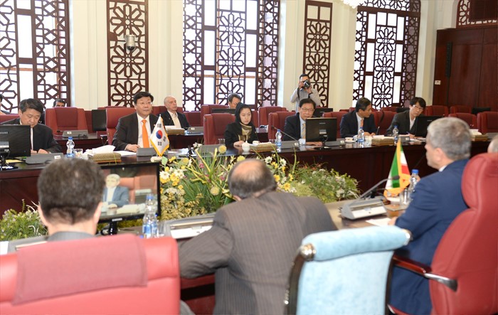 (서울=포커스뉴스) 주형환 산업통상자원부 장관이 28일(현지시간) 이란 경제재정부를 방문해 알리 타옙니아(Ali Tayebnia) 이란 경제재정부 장관과 면담을 갖고 있다. 주 장관은 이날 면담에서 한-이란 양국간 경제 협력과 한국의 금융 및 개발원조 지원 확대, 보험과 자금세탁 관련 금융 협력 및 조세 협력에 관해 의견을 교환했다. <사진제공=산업통상자원부>