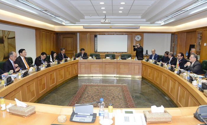 (서울=포커스뉴스) 주형환 산업통상자원부 장관은 28일(현지시간) 이란 중앙은행에서 발리올라 세이프(Valiollah SEIF) 이란 중앙은행 총재와 면담을 갖고 있다. <사진제공=산업통상자원부>