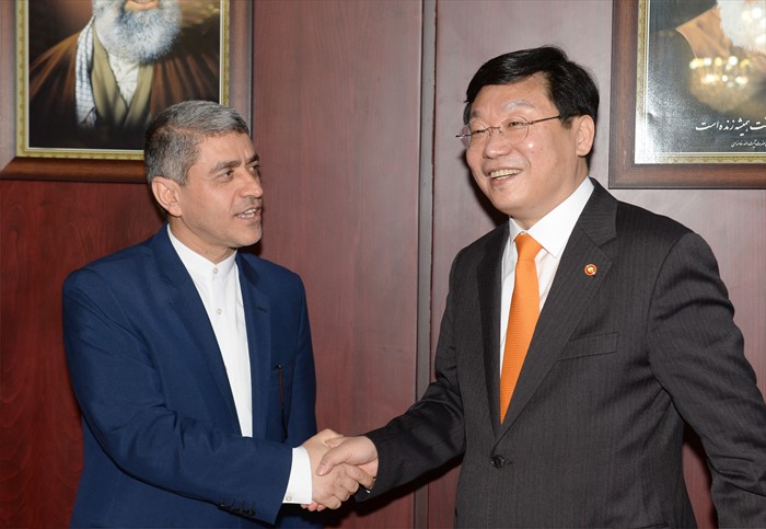 (서울=포커스뉴스) 주형환 산업통상자원부 장관이 28일(현지시간) 이란 경제재정부를 방문해 알리 타옙니아(Ali Tayebnia) 이란 경제재정부 장관과 면담을 갖고 있다. 주 장관은 이날 면담에서 한-이란 양국간 경제 협력과 한국의 금융 및 개발원조 지원 확대, 보험과 자금세탁 관련 금융 협력 및 조세 협력에 관해 의견을 교환했다. <사진제공=산업통상자원부>