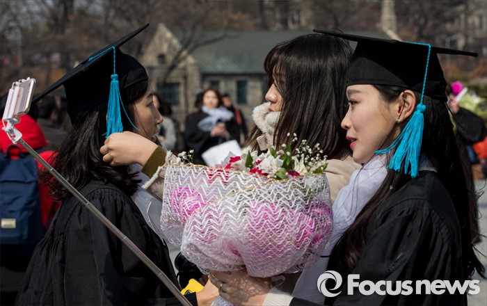 (서울=포커스뉴스) 29일 오후 서울 서대문구 이화여자대학교에서 열린 2015학년도 전기 학위수여식에 참석한 졸업생들이 기념촬영을 하고 있다.