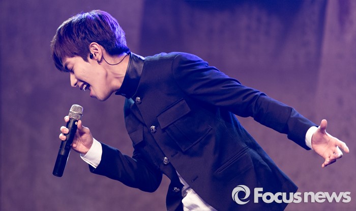 (서울=포커스뉴스) 29일 오후 서울 강남구 일지아트홀에서 신인 보이그룹 크나큰의 멤버 오희준이 데뷔 쇼케이스를 하고 있다.