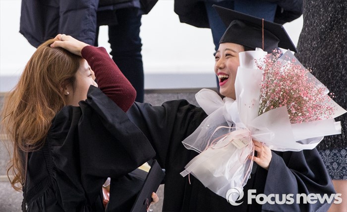 (서울=포커스뉴스) 29일 오후 서울 서대문구 이화여자대학교에서 열린 2015학년도 전기 학위수여식에 참석한 졸업생들이 밝게 웃고 있다.