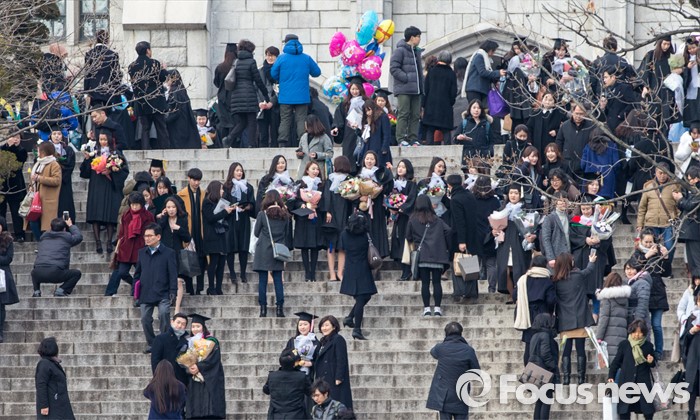 (서울=포커스뉴스) 29일 오후 서울 서대문구 이화여자대학교에서 열린 2015학년도 전기 학위수여식에 참석한 졸업생들이 기념촬영을 하고 있다.