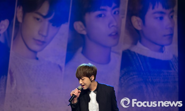(서울=포커스뉴스) 29일 오후 서울 강남구 일지아트홀에서 신인 보이그룹 크나큰의 멤버 정인성이 데뷔 쇼케이스를 하고 있다.