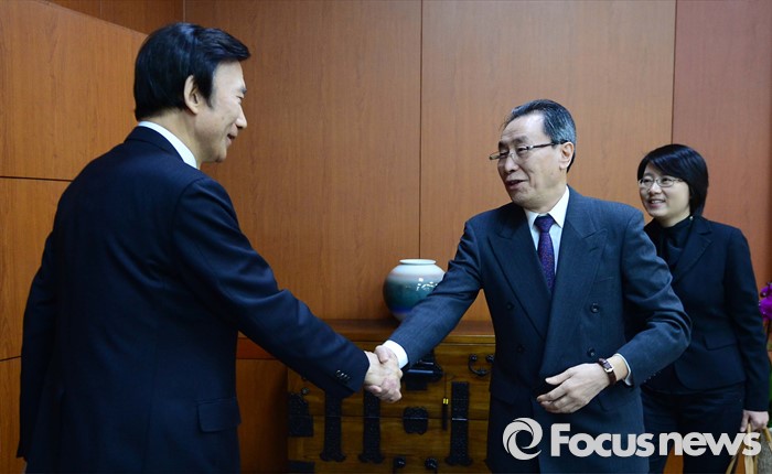 (서울=포커스뉴스) 29일 오후 서울 종로구 세종로 외교부청사에서 윤병세 외교부 장관과 우다웨이 북핵6자회담 중국 측 수석대표가 악수를 하고 있다.