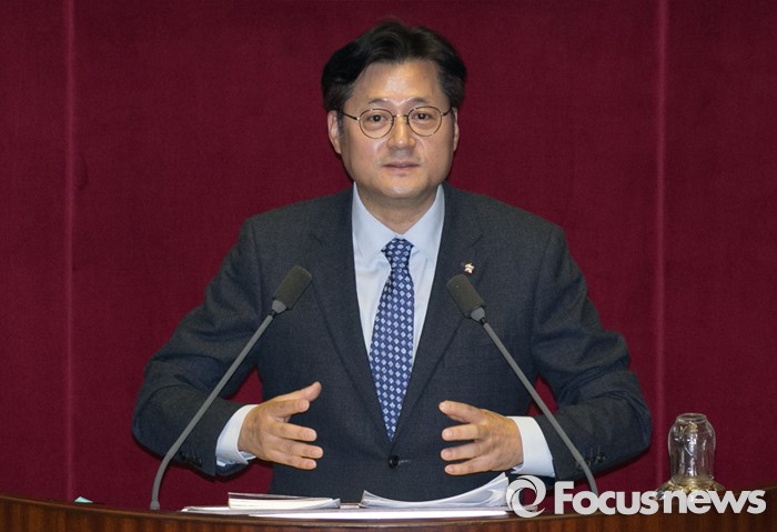 | △ 필리버스터 나선 홍익표 의원 |