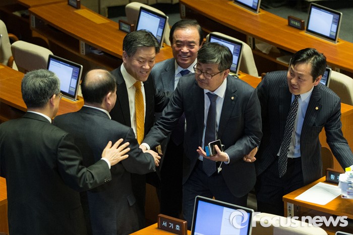 (서울=포커스뉴스) 테러방지법 직권상정에 반발해 야당이 무제한 토론(필리버스터)를 일주일째 진행하며 총 140시간을 돌파한 29일 오후, 서울 여의도 국회 본회의장에서 토론에 참여한 최원식 국민의당 의원이 발언을 마친 후 퇴장하고 있다.