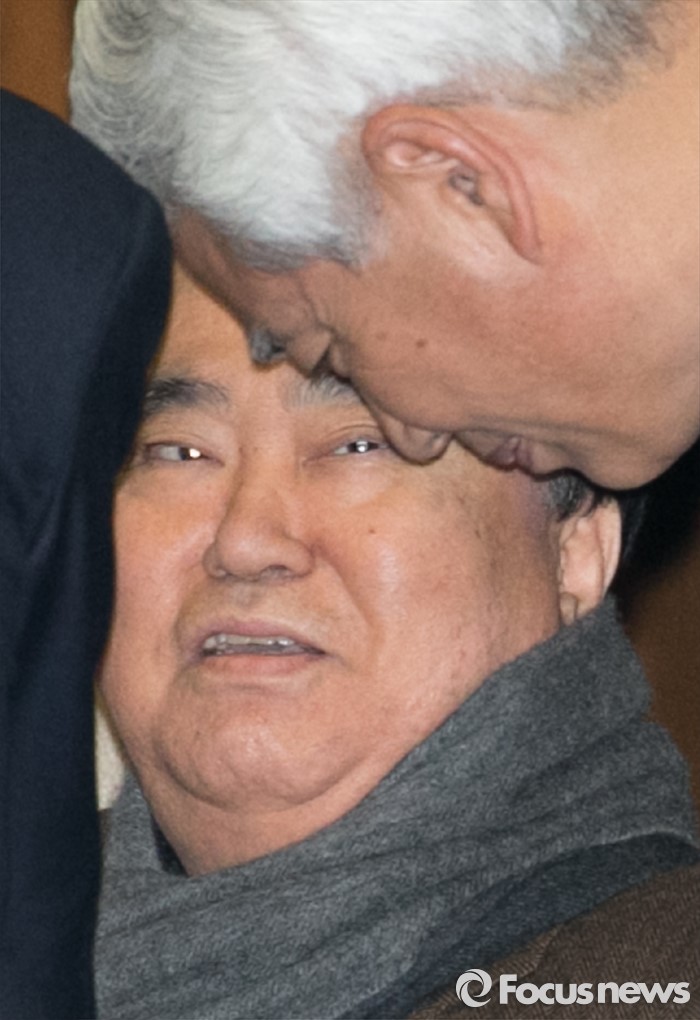 (서울=포커스뉴스) 테러방지법 직권상정에 반발해 야당이 무제한 토론(필리버스터)를 일주일째 진행하며 약 140시간을 돌파한 29일 오후 서울 여의도 국회 본회의장에서 현역 의원 하위 20% 컷오프(공천배제) 통보를 받은 문희상(왼쪽), 백군기 더불어민주당 의원이 대화하고 있다.