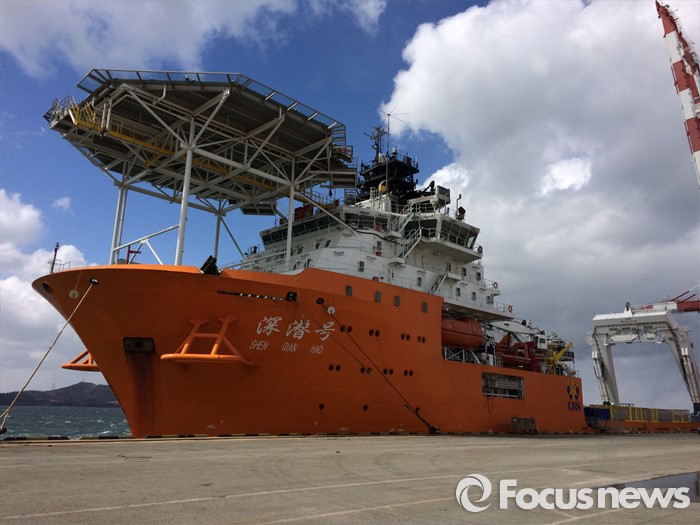 (서울=포커스포토) 세월호 주변을 둘러싸는 사각펜스 등 자재를 실은 상하이샐비지 소속 선박(센첸하오, Shen qian Hao)*이 지난 26일 낮 중국 상하이를 출발해 29일 오전 10시 30분경 목포신항으로 들어 왔다. 해수부는 이번에 설치할 철제 사각펜스는 앞으로 선수들기 및 인양시 유실방지망을 설치할 수 없는 선체 좌현쪽 개구부 등을 통한 유실을 방지하기 위하여 가로 200m×세로 160m×높이 3m 규모로 눈금 2.0㎝ 직사각형 모양의 철재망 36개 세트로서 25일간 설치할 예정이라고 밝혔다. <사진제공=해양수산부>