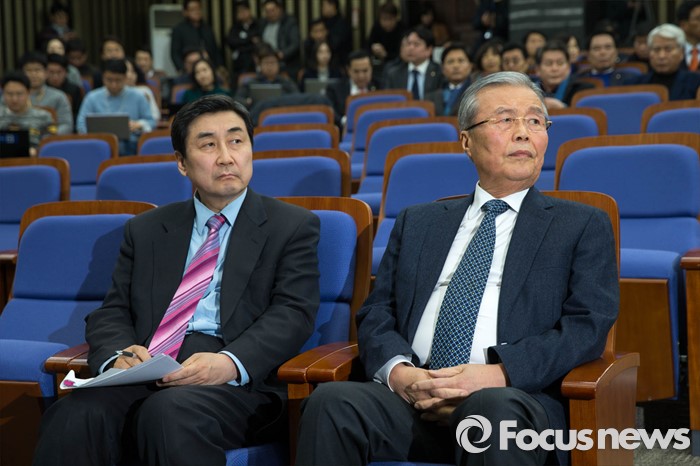(서울=포커스뉴스) 더불어민주당이 필러버스터 중단을 예고한 1일 오후 이종걸 더민주 원내대표와 김종인 비대위 대표가 서울 여의도 국회에서 열린 의원총회에 참석해 총회 시작을 기다리며 앉아 있다.