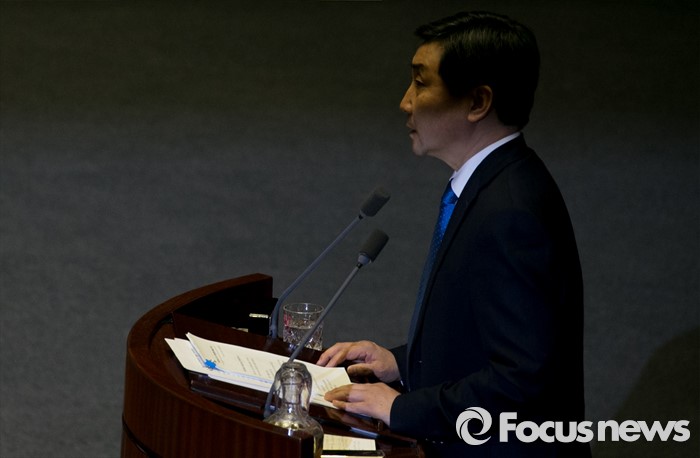 (서울=포커스뉴스) 테러방지법 직권상정에 반발해 야당이 세계 최장 기록의 필리버스터(무제한 토론)를 이어가고 있는 2일 오전 서울 여의도 국회 본회의장에서 토론에 참여한 이종걸 더불어민주당 원내대표가 발언하고 있다. 야당은 이날 필리버스터를 중단하고 선거법 등을 처리할 예정이다.
