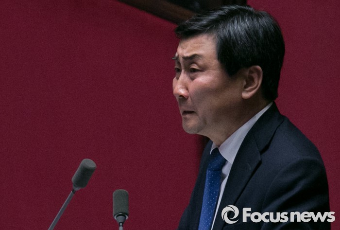 (서울=포커스뉴스) 테러방지법 직권상정에 반발해 야당이 세계 최장 기록의 필리버스터(무제한 토론)를 이어가고 있는 2일 오후 서울 여의도 국회 본회의장에서 토론에 참여한 이종걸 더불어민주당 원내대표가 발언 중 울먹이고 있다. 야당은 이날 필리버스터를 중단하고 선거법 등을 처리할 예정이다.