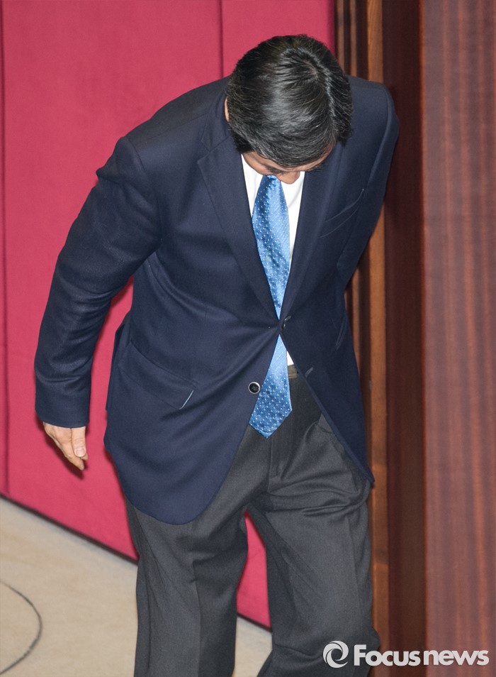 (서울=포커스뉴스) 테러방지법 직권상정에 반발해 야당이 세계 최장 기록의 필리버스터(무제한 토론)를 진행한 2일 오후 서울 여의도 국회 본회의장에서 마지막 주자인 이종걸 더불어민주당 원내대표가 토론을 마친 뒤 단상에서 내려오고 있다. 마지막 주자로 나선 이 원내대표는 이날 정청래 의원의 기록인 11시간 40분을 경신한 12시간 31분을 기록하며 토론을 마쳤으며, 야당의 필리버스터는 약 193시간만에 종료됐다.