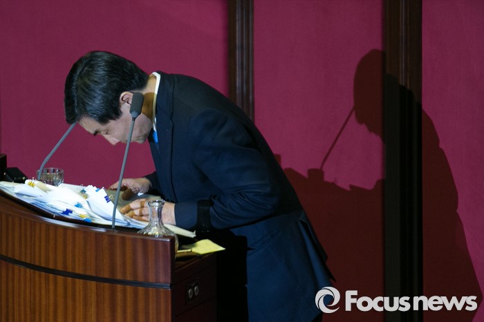 (서울=포커스뉴스) 테러방지법 직권상정에 반발해 야당이 세계 최장 기록의 필리버스터(무제한 토론)를 진행한 2일 오후 서울 여의도 국회 본회의장에서 마지막 주자인 이종걸 더불어민주당 원내대표가 토론을 마친 뒤 인사하고 있다. 마지막 주자로 나선 이 원내대표는 이날 정청래 의원의 기록인 11시간 40분을 경신한 12시간 31분을 기록하며 토론을 마쳤으며, 야당의 필리버스터는 약 193시간만에 종료됐다.
