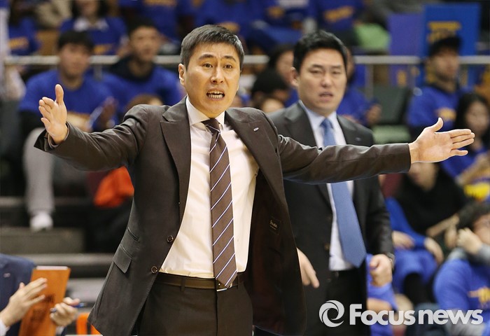 (서울=포커스뉴스) 2일 서울 잠실실내체육관에서 열린 2015-2016 프로농구 삼성-KGC 6강플레이오프 4차전에서 삼성 이상민 감독이 경기중 선수들에게 수비 위치에 대해 강력하게 주문하고 있다.
