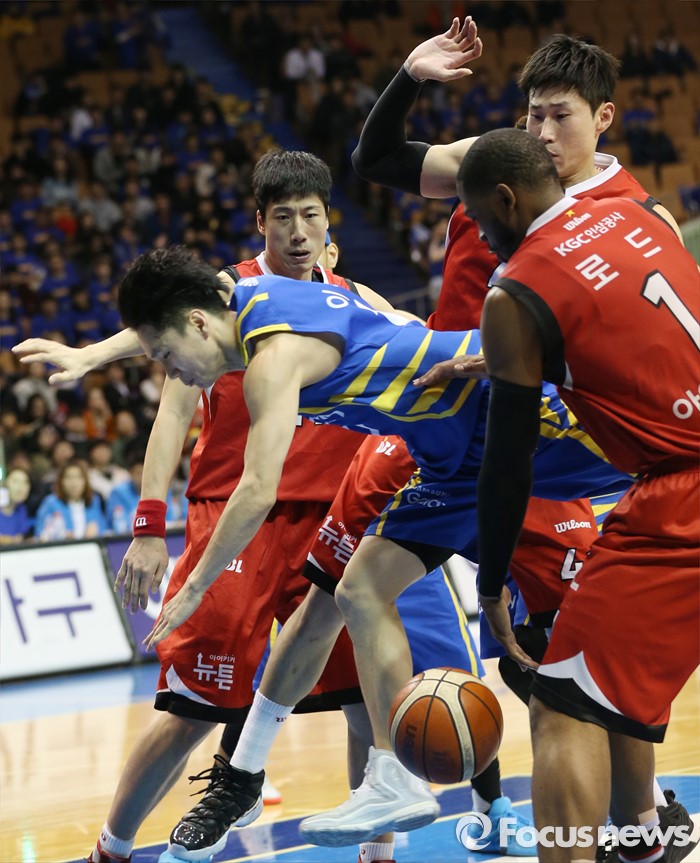 (서울=포커스뉴스) 2일 서울 잠실실내체육관에서 열린 2015-2016 프로농구 삼성-KGC 6강플레이오프 4차전에서 삼성 이시준이 레이업슛을 시도하다 KGC 찰스 로드의 수비에 걸려 볼을 놓치고 있다.