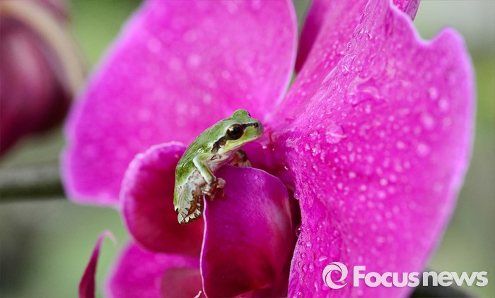 (청주=포커스뉴스) 경칩을 앞둔 3일 오전 충북 청주시 오창읍 충북농업기술원 화훼온실에서 청개구리가 겨울잠에서 깨어나 모습을 보이고 있다.