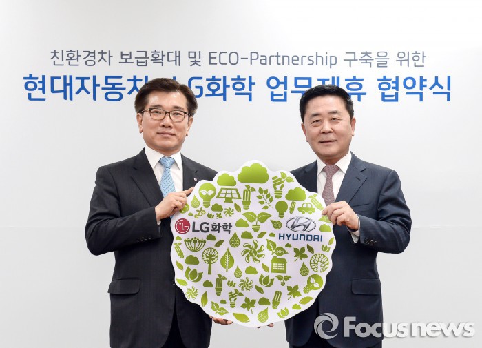 현대자동차는 2일 LG화학과 친환경차 보급확대 및 ‘에코-파트너십(ECO-Partnership)’ 구축을 위한 업무제휴 협약을 체결했다고 3일 밝혔다.