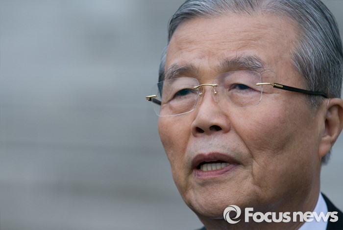 (서울=포커스뉴스) 김종인 더불어민주당 비대위 대표가 3일 오전 서울 여의도 국회 앞에서 열린 달리는 정책의자 발대식에 참석한 뒤 야권 통합 제안과 관련 취재진 질문에 답하고 있다.