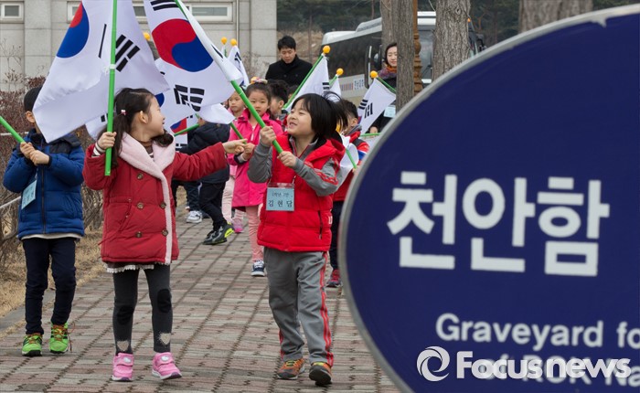 | △ 천안함 묘역 찾은 초등학교 신입생 어린이 |