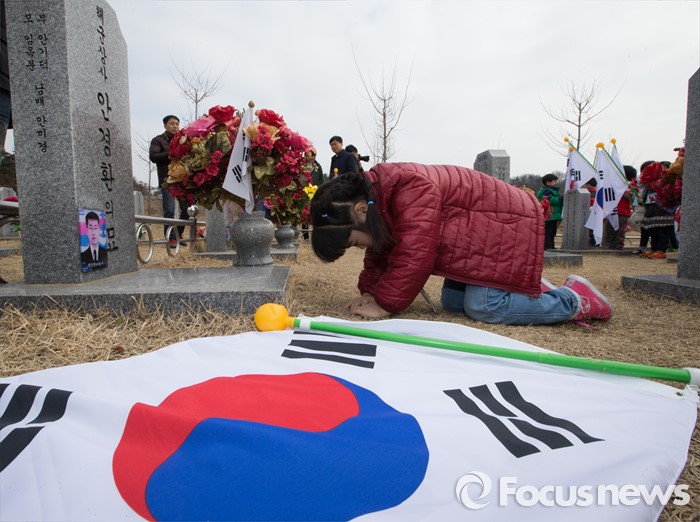 (대전=포커스뉴스) 3일 오전 입학 후 첫 수업에 들어간 대전 화정초등학교 1학년 신입생들이 대전 유성구 국립대전현충원 천안함 46용사 묘역을 찾아 큰절을 하고 있다.