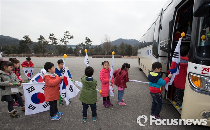 (대전=포커스뉴스) 3일 오전 입학 후 첫 수업에 들어간 대전 화정초등학교 1학년 신입생들이 대전 유성구 국립대전현충원을 찾아 참배를 마치고 현충원을 나서고 있다.