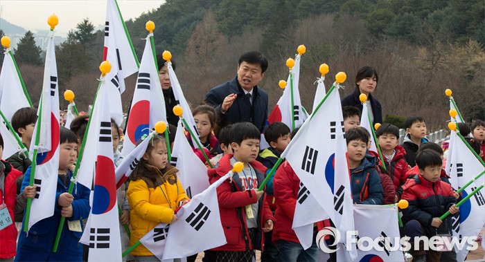 (대전=포커스뉴스) 3일 오전 입학 후 첫 수업에 들어간 대전 화정초등학교 1학년 신입생들이 대전 유성구 국립대전현충원 천안함 46용사 묘역을 찾아 참배하고 있다.