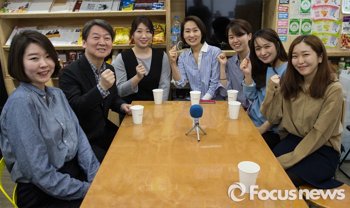 (서울=포커스뉴스) 안철수 국민의당 상임공동대표가 3일 오후 서울 용산구 숙명여자대학교 창업보육센터에서 젊은 여성 창업인들과 화이팅을 외치고 있다.