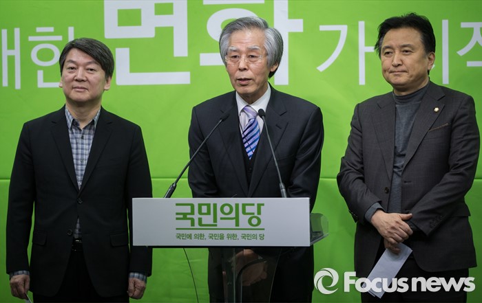 (서울=포커스뉴스) 국민의당 원자력안전특위 위원장으로 임명 된 장순식 박사가 3일 오전 서울 마포구 국민의당 당사에서 인사말을 하고 있다. 안철수 상임공동대표, 장 박사, 김영환 의원
