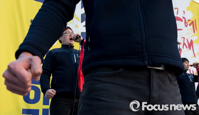 1심은 “피고인의 말을 일반시민, 경찰병력 등이 듣고 있던 사실이 인정된다”면서 박 대표에게 벌금 30만원을 선고했다.지난달 27일 오후 서울광장에서 민주노총과 참여연대, 전국빈민연합 등 시민사회단체들이 4차 민중총궐기 집회에 참가하고 있다. 2016.02.27 김인철 기자