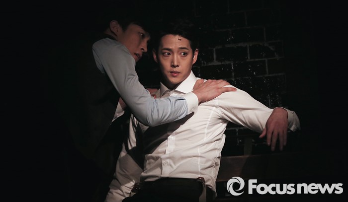 (서울=포커스뉴스) 3일 오후 서울 종로구 대명문화공장에서 열린 뮤지컬 '쓰릴 미' 프레스콜 행사에 참석한 배우 이상이(왼쪽)와 강동호가 주요장면을 시연하고 있다.