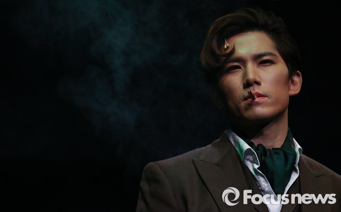 (서울=포커스뉴스) 3일 오후 서울 종로구 대명문화공장에서 열린 뮤지컬 '쓰릴 미' 프레스콜 행사에 참석한 배우 정동화가 주요장면을 시연하고 있다.