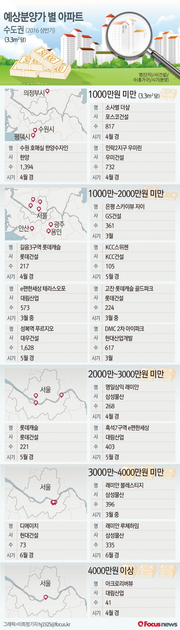 | △ [그래픽] 2016 상반기 수도권 예상분양가 별 아파트 |