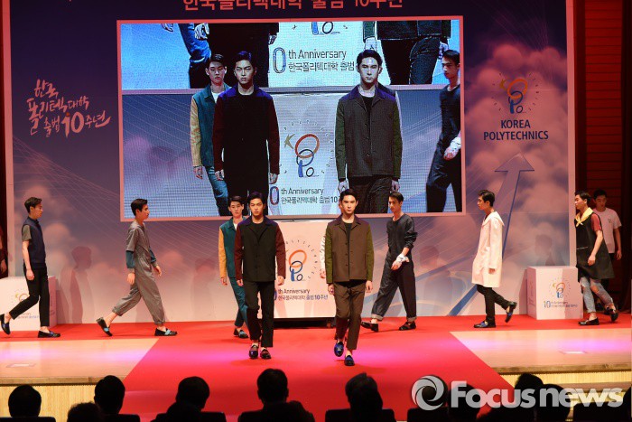 (서울=포커스뉴스) 3일 오후 한국폴리텍대학(이사장 이우영) 서울정수캠퍼스에서 열린 폴리텍대학 출범10주년 기념식에서 장광효 디자이너가 직접 디자인한 실습복 패션쇼가 열리고 있다. <사진제공=폴리텍대학>
