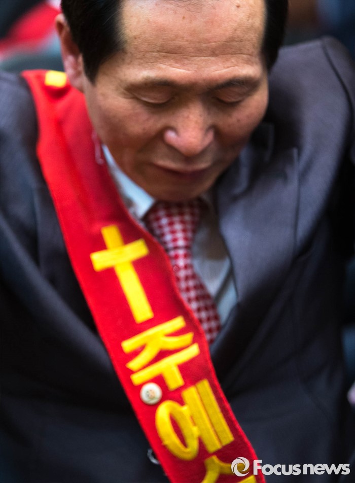 (서울=포커스뉴스) 3일 오후 서울 종로 한국기독교100주년 기념관에서 열린 기독자유당 창당대회에서 참가자들이 기도를 하고 있다.