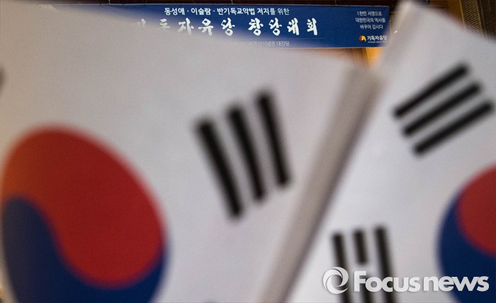 | △ '기독자유당 창당대회', 태극기 사이로 |